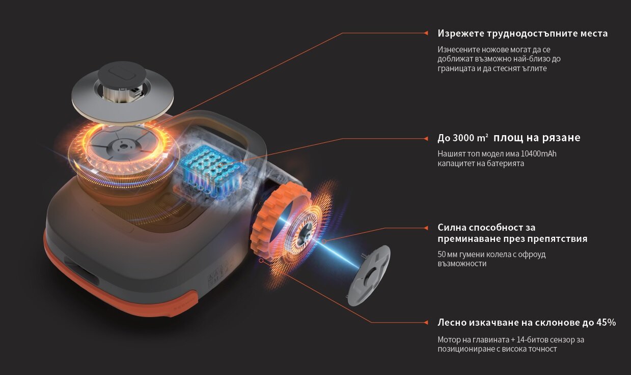 С помощта на системата EFLS (Exact Fusion Locating System) Navimow определя позицията си в градината с висока точност до два сантиметра.